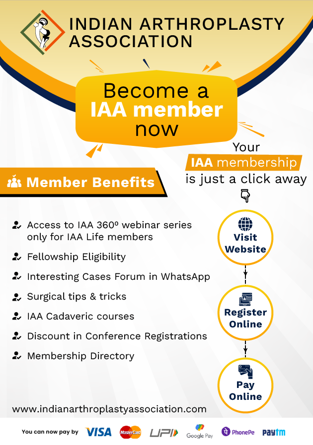 Arthroplasty is comparatively a later super-specialty of Orthopedics in India. Till 1970 only operations commonly practiced worth endoprosthetic operation (mono / bipolar) was mainly done for sub-capital, fractures in the elderly, non union neck femur and in exceptional case of AVN incidence which was rising in view of uncontrolled use of cortisone and alcoholism. Hip Arthroplasty was commonly practiced in the later part of the 20th century. Challenges during those times were non availability of instrumentation, lack of infra structure and training. Dr K T Dholakia and Dr K V Chaubal in Mumbai, Dr K H Sancheti in Pune, Dr P S Maini in Delhi, Dr ON Nagi in Chandigarh did conventional cemented Hip Arthroplasty. In 1980 at the Silver Jubilee Conference of Indian Orthopaedic Associatiionin Mumbai, I had the good fortune of organizing the first live demonstration of Charnley’s cemented mono - block femoral and plastic cup.